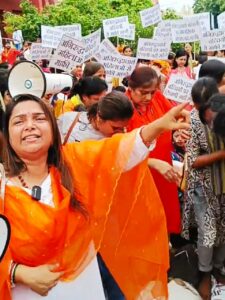 महिलाओं ने मांग की कि अनिरुद्धाचार्य के खिलाफ पॉक्सो एक्ट के तहत मामला दर्ज कर उन्हें जेल भेजा जाए। उनका कहना है कि कथावाचक के बयान न केवल महिलाओं को अपमानित करते हैं, बल्कि समाज में बच्चियों और महिलाओं के प्रति अविश्वास पैदा करते हैं। प्रदर्शनकारी बोलीं, “ऐसे लोगों को सजा मिलनी चाहिए, वरना समाज में गलत संदेश जाएगा।” पुलिस ने फिलहाल स्थिति को नियंत्रित कर लिया।