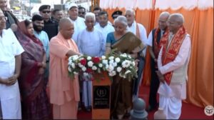 रामनगरी अयोध्या एक बार फिर इतिहास रचते हुए सांस्कृतिक एकता की मिसाल बनी। बुधवार को केंद्रीय वित्त मंत्री निर्मला सीतारमण और उत्तर प्रदेश के मुख्यमंत्री योगी आदित्यनाथ ने टेढ़ी बाजार चौराहे पर स्थित बृहस्पति कुंड का भव्य लोकार्पण किया। इस मौके पर दोनों नेताओं ने दक्षिण भारतीय संतों की प्रतिमाओं का अनावरण कर उत्तर और दक्षिण भारत की सांस्कृतिक धारा को जोड़ने वाला प्रतीक स्थापित किया।