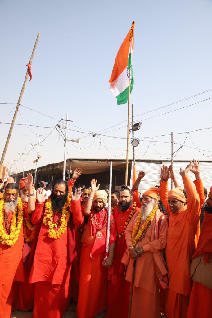 महाकुंभ में जो घाटों पर सुबह से ही हर-हर गंगे और हर-हर महादेव के मंत्रोच्चार गूंजते हैं वे गणतंत्र की सुबह जन गण मन… से गूंज उठे। महाकुंभ के आकर्षण अखाड़ा सेक्टर में गणतंत्र दिवस पर भगवा और तिरंगे का अनोखा मेल देखने को मिला। पंच दशनाम श्री निरंजनी अखाड़े के शिविर में अखिल भारतीय अखाड़ा परिषद के अध्यक्ष महंत रविंद्र पुरी की अगुवाई में राष्ट्रध्वज फहराया गया। साधु-संतों ने श्रद्धालुओं के साथ तिरंगे के नीचे राष्ट्रगान गाया। श्री पंच दशनाम संन्यासिनी अखाड़े में भी महिला नागा संन्यासिनियों ने तिरंगा फहरा कर गणतंत्र दिवस मनाया।