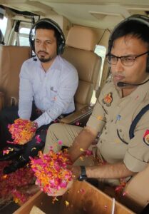 डीएम शशांक त्रिपाठी और एसपी अर्पित विजयवर्गीय ने हेलीकॉप्टर से मंदिर परिसर का हवाई सर्वेक्षण करते हुए श्रद्धालुओं पर गेंदे और गुलाब की पंखुड़ियों की वर्षा की। सुबह करीब साढ़े नौ बजे हेलीकॉप्टर ने मंदिर के ऊपर तीन चक्कर लगाए और हर-हर महादेव के जयघोष के बीच पुष्पवर्षा की गई।
