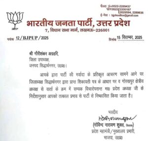 यूपी की राजनीति में एक और विवाद ने भूचाल ला दिया है। सिद्धार्थनगर के भाजपा जिला उपाध्यक्ष गौरीशंकर अग्रहरि को पार्टी से निष्कासित कर दिया गया है। उनके खिलाफ हाल ही में सोशल मीडिया पर एक युवती के साथ आपत्तिजनक स्थिति का वीडियो वायरल हुआ था, जिसने राजनीतिक गलियारों में हलचल मचा दी थी।