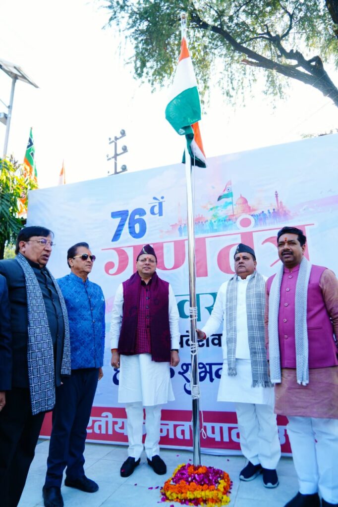 76 वें गणतंत्र दिवस के अवसर पर मुख्यमंत्री श्री पुष्कर सिंह धामी और भाजपा के प्रदेश अध्यक्ष श्री महेंद्र भट्ट ने बलवीर रोड स्थित भाजपा कार्यालय में राष्ट्रीय ध्वज फहराया। इस अवसर पर उन्होंने सभी को गणतंत्र दिवस की शुभकामनाएं दी।