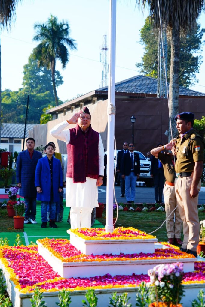 मुख्यमंत्री श्री पुष्कर सिंह धामी ने 76वें गणतंत्र दिवस के अवसर पर मुख्यमंत्री आवास में राष्ट्रीय ध्वज फहराया।