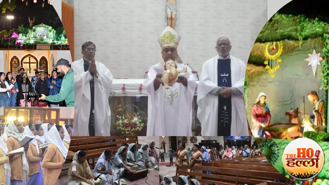 यूपी के वाराणसी में क्रिसमस का पर्व हर्षोल्लास के साथ मनाया गया। महागिरजा में प्रभु यीशु के जन्म की झांकी सजाई गई, जहां बिशप फादर यूजीन जोसेफ ने 70 किलो का केक काटा और बाइबिल का पाठ कर शांति और खुशहाली के लिए प्रार्थना की।