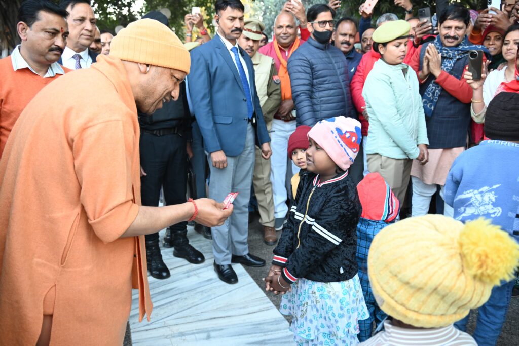उत्तर प्रदेश के मुख्यमंत्री योगी आदित्यनाथ ने अपने गोरखपुर दौरे के दूसरे दिन गोरखनाथ मंदिर में सुबह के मंदिर भ्रमण के दौरान एक दिल छू लेने वाली पहल की। उन्होंने मंदिर परिसर में उपस्थित मासूम बच्चों को अपने हाथों से चॉकलेट वितरित कर उनके चेहरों पर मुस्कान बिखेरी। साथ ही, गौ सेवा करते हुए उन्होंने यह संदेश भी दिया कि हमारे समाज में पशुओं का भी सम्मान होना चाहिए।