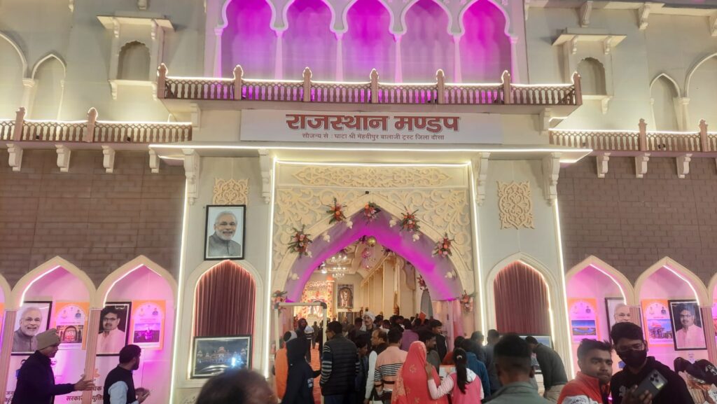 पवेलियन में राजस्थान के प्रसिद्ध किले हवा महल, जयगढ़, चित्तौड़ किला और विजय स्तंभ की झलकियां दिखाई जा रही हैं। इसके अलावा यहां आने वाले श्रद्धालुओं के लिए विशेष भोजन की व्यवस्था की गई है। जिसके लिए लोग कतार लगाकर भोजन का स्वाद लेते देखे जा सकते हैं। राजस्थान के लोक संगीत, नृत्य और सांस्कृतिक कार्यक्रम 45 दिनों तक लगातार चलेंगे।