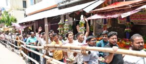 मनकामेश्वर मंदिर में लंबी कतार, सुरक्षा के कड़े इंतजाम