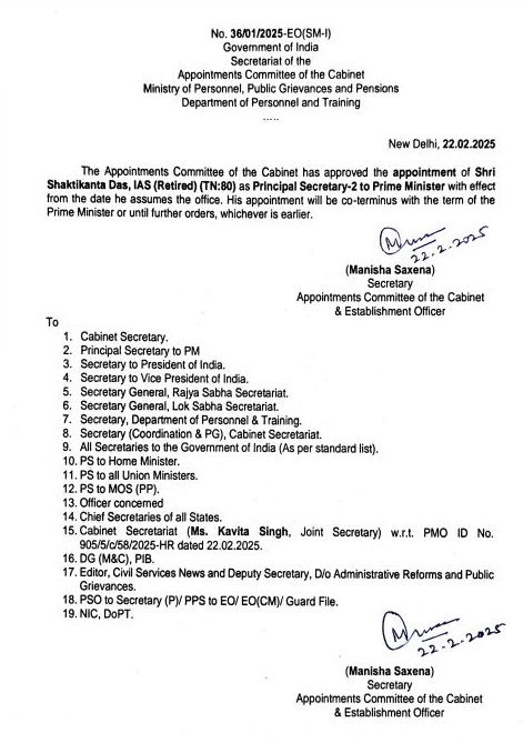 रिजर्व बैक ऑफ इंडिया (RBI) के पूर्व गवर्नर शक्तिकांत दास प्रधानमंत्री नरेंद्र मोदी के प्रमुख सचिव होंगे. शक्तिकांत दास आरबीआई गवर्नर के रूप में 6 साल तक अपनी सेवाएं देने के बाद पिछले साल दिसंबर में रिटायर हुए थे. रिटायरमेंट के कुछ महीने बाद अब उन्हें बड़ी जिम्मेदारी मिलने जा रही है। बता दें कि, आरबीआई के पूर्व गवर्नर शक्तिकांत दास, जो 1980 बैच के तमिलनाडु कैडर के भारतीय प्रशासनिक सेवा (IAS) अधिकारी हैं, दिसंबर 2018 में रिजर्व बैंक के गवर्नर बने थे और पिछले साल उन्होंने अपने पद से इस्तीफा दिया था. रिजर्व बैंक के गवर्नर के रूप में छह साल के अपने कार्यकाल में, उन्हें कई वैश्विक आर्थिक संकटों का सामना करना पड़ा, जिनमें कोविड-19 महामारी और रूस-यूक्रेन युद्ध जैसी अस्थिरताएँ शामिल थीं।