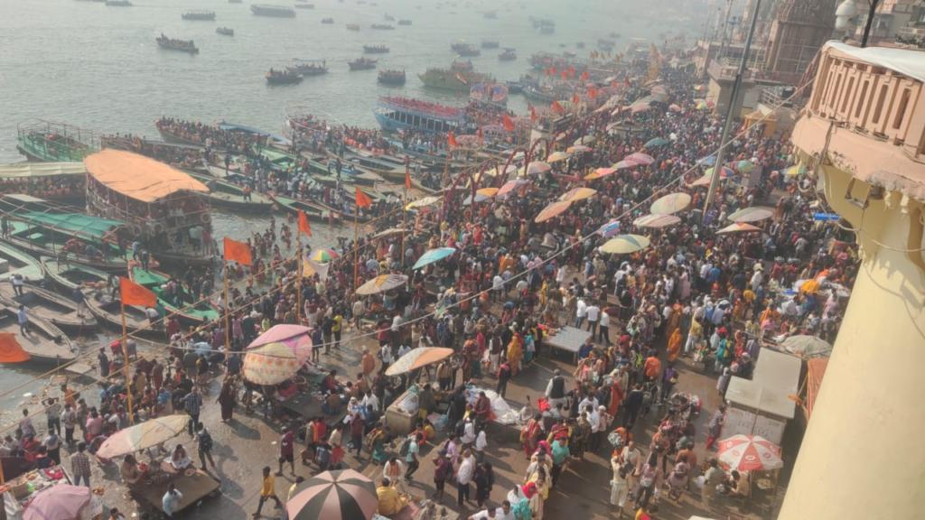 काशी, प्रयागराज और अयोध्या के तीर्थ त्रिकोण की यात्रा पर निकले श्रद्धालुओं का भारी जमावड़ा वाराणसी में देखने को मिल रहा है। शहर के प्रमुख घाटों, मंदिरों और गलियों में लोगों की भारी भीड़ उमड़ रही है। यात्री पैदल घूमने को मजबूर हैं, क्योंकि सड़कों पर वाहनों की लंबी कतारें लगी हुई हैं।