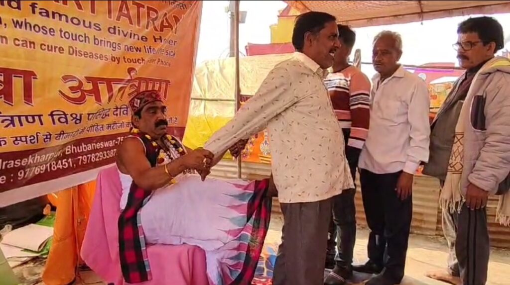 यूपी के प्रयागराज में चल रहे महाकुम्भ मेले में अलग-अलग खूबियों वाले कई बाबा दिख रहे हैं। इन्हीं सब के बीच अखाड़ा क्षेत्र में डिवाइन ट्रीटमेंट यानी दैवि चिकित्सा भी हो रही है। भुवनेश्वर से आये आर्तत्राण बाबा के कैम्प में मरीज लाइन में लगे रहते हैं। कुर्सी पर बैठे बाबा मरीज से परेशानी पूछते हैं फिर वो पेट या पीठ थपथपाते हैं कभी पैर लगाते हैं फिर पूछते है देखो ठीक लग रहा है। इस दौरान बाबा कुछ बुदबुदाते रहते हैं। फिर मरीज हां कर आगे बढ़ जाता है ये सिलसिला दिन भर चलता रहता है।