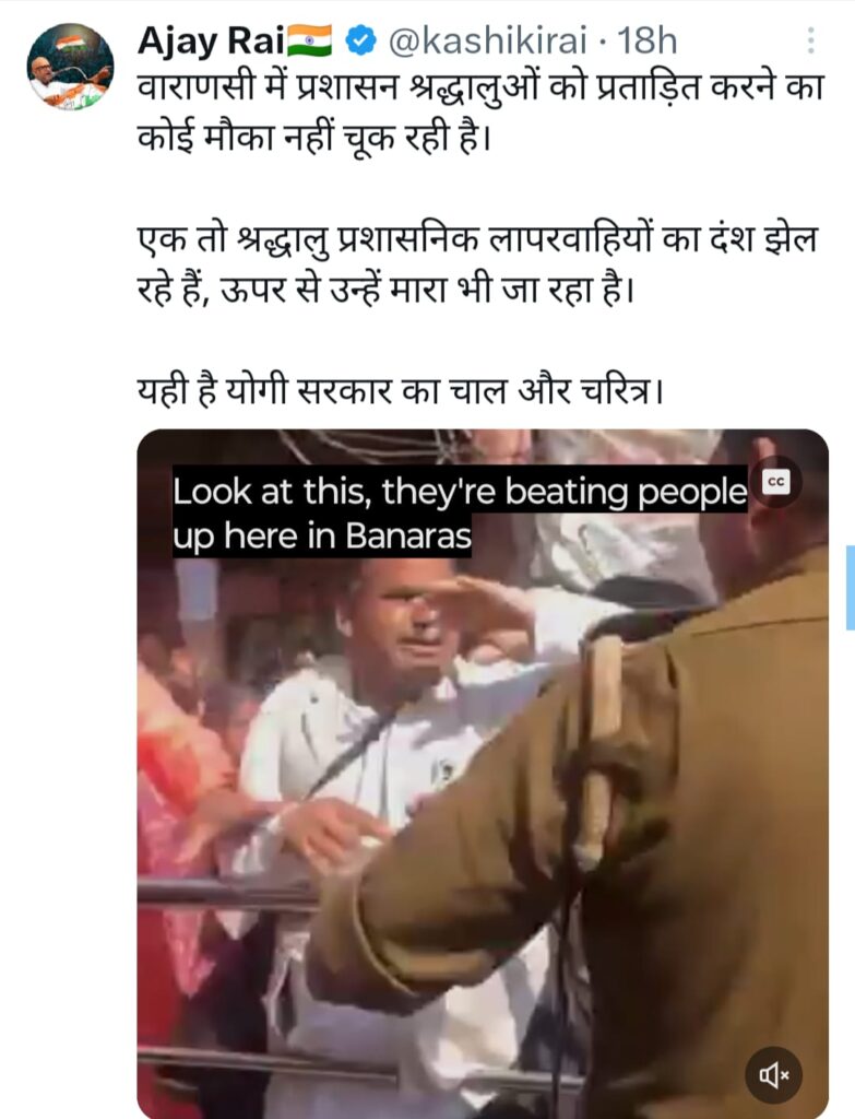 इस पूरी घटना का एक श्रद्धालु ने वीडियो बना लिया, जो सोशल मीडिया पर वायरल हो गया। कांग्रेस प्रदेश अध्यक्ष अजय राय ने इस वीडियो को एक्स हैंडल पर पोस्ट कर सिपाही की हरकत की निंदा की। पुलिस प्रशासन का कहना है कि कुछ श्रद्धालु जबरन लाइन में घुसने की कोशिश कर रहे थे, जिसे रोकने के दौरान विवाद हुआ। वहीं, श्रद्धालुओं का आरोप है कि सिपाही ने बिना किसी कारण के श्रद्धालु को थप्पड़ मारा और दुर्व्यवहार किया।