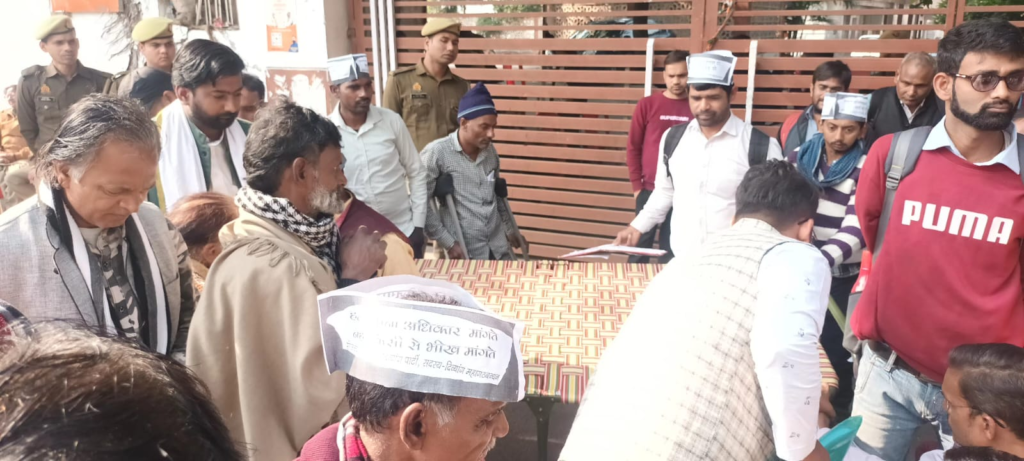 भिक्षा नहीं रोजगार चाहिए-जीने का अधिकार चाहिए… इस नारे के साथ यूपी के विभिन्न जिलों से आए दिव्यांगों ने सोमवार सुबह भाजपा के प्रदेश कार्यालय के सामने खाट बिछा कर प्रदर्शन किया।