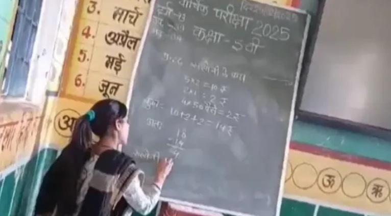 कैमरे में कैद हुई यह घटना 25 फरवरी को बैतूल जिले में हुई। स्कूल ने शिक्षिका को निलंबित कर दिया है और मामले की जांच शुरू कर दी है। परीक्षा के दौरान, प्राथमिक विद्यालय की शिक्षिका संगीता विश्वकर्मा को ब्लैकबोर्ड पर गणित के प्रश्नपत्र के उत्तर लिखते हुए देखा गया, जिससे छात्र नकल कर सकें।