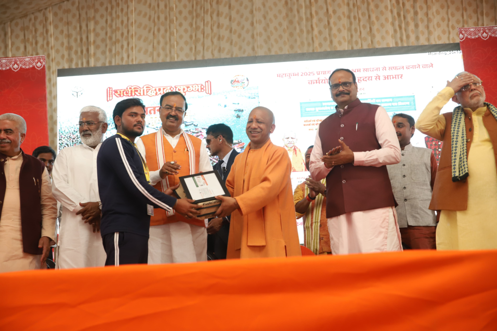 महाकुंभ के समापन के बाद गुरुवार को मेला क्षेत्र पहुंचे मुख्यमंत्री योगी आदित्यनाथ ने सफाई और स्वास्थ्य कर्मियों को सम्मानित किया। इस अवसर पर आयोजित कार्यक्रम में सीएम ने प्रयागराज से जुड़े स्वच्छता कर्मियों को अतिरिक्त 10,000 रुपए का बोनस देने की घोषणा की। सीएम योगी के साथ दोनों डिप्टी सीएम और अधिकारियों ने सफाई कर्मचारियों के साथ भोजन भी किया।