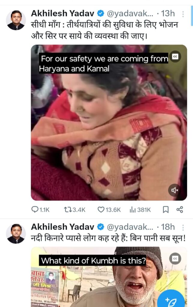 महाकुंभ शुरू होने पर सपा मुखिया अखिलेश यादव ने शुभकामनाएं देने के साथ मेला क्षेत्र में सरकार द्वारा किये गए इंतजामों पर सवाल उठाएं हैं।