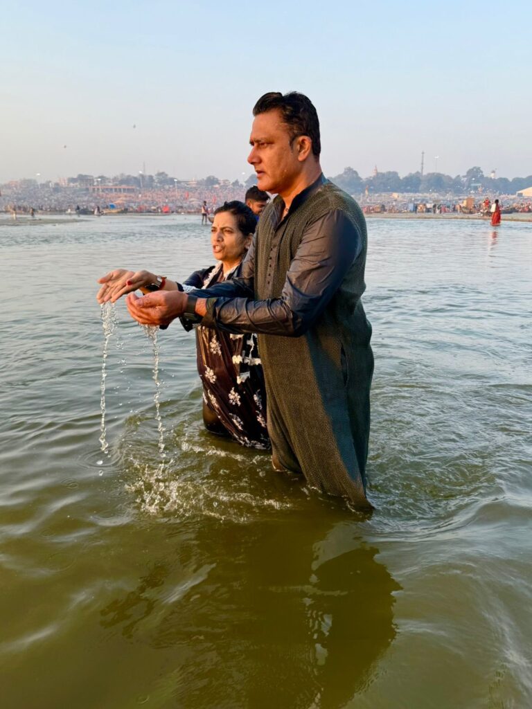 पूर्व भारतीय क्रिकेटर और कोच अनिल कुंबले ने माघ पूर्णिमा के शुभ अवसर पर त्रिवेणी संगम में आस्था की डुबकी लगाई। उनकी पत्नी चेतना रामतीर्था भी इस आध्यात्मिक यात्रा में उनके साथ रहीं। संगम स्नान के बाद कुंबले ने अपनी तस्वीरें सोशल मीडिया प्लेटफॉर्म ‘एक्स’ पर साझा कीं और सिर्फ एक शब्द लिखा “Blessed” (आशीर्वाद), जिससे उनकी आध्यात्मिक अनुभूति स्पष्ट झलकी।