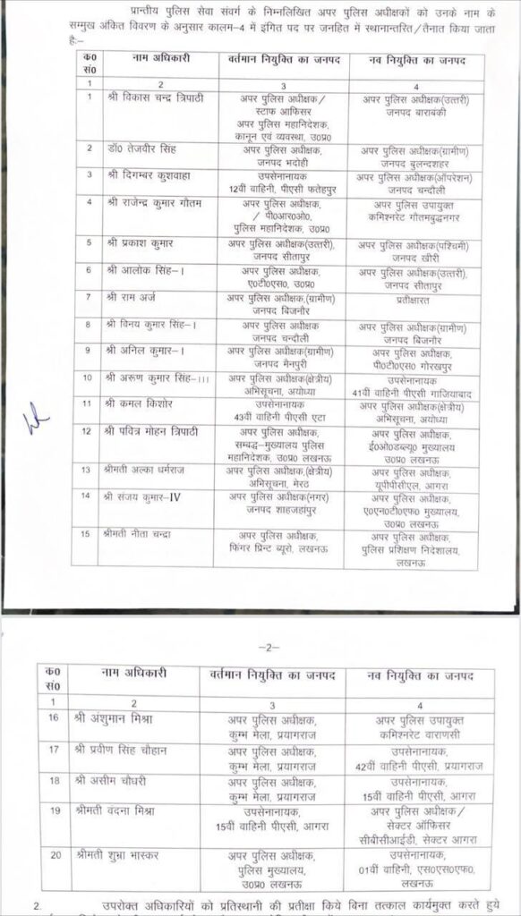 -प्रदीप कुमार: पुलिस अधीक्षक, एएनटीएफ मुख्यालय, लखनऊ से पुलिस अधीक्षक, आर्थिक अपराध अनुसंधान संगठन, वाराणसी।