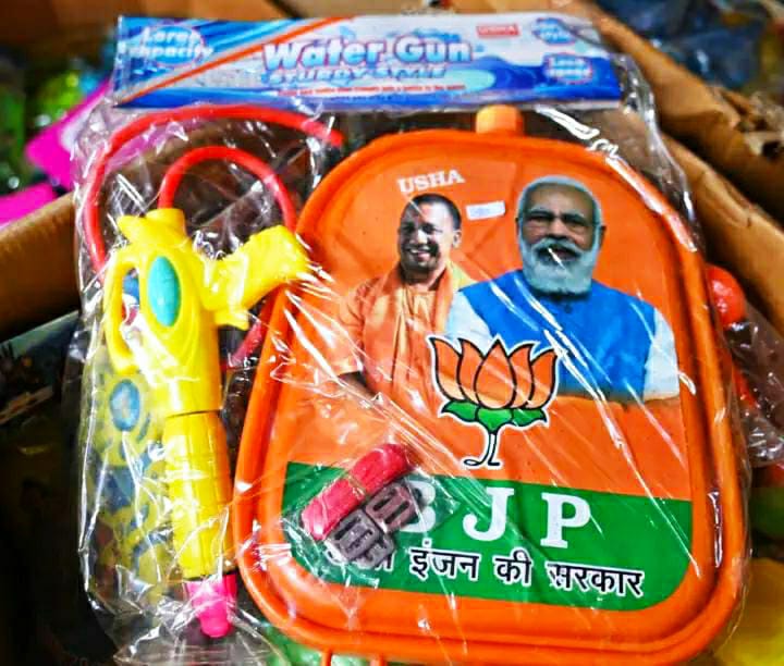 वाराणसी का बाजार रंगों और पिचकारियों से गुलजार हो गया है। इस बार फायर स्मोक और हैंड स्मोक बारूद वाले पटाखे और बम लोकप्रिय हो रहे हैं। ये पटाखे और बम जब फोड़े जाते हैं तो सूखा रंग और गुलाल लोगों के ऊपर बरसाता है। पिचकारी विक्रेता सदन यादव ने बताया कि होली पर लोगों को धोखे से रंगने वाले आइटमों की मांग होती है। इस बार फायर सिलेंडर के रूप में पिचकारी आई है, जो दिखने में फायर सिलेंडर जैसी है और इसमें सूखा गुलाल और रंग भरा हुआ है। इस बार भी लोगों को मोदी-योगी वाली पिचकारियां आकर्षित कर रही हैं। दुकानदारों का कहना है कि मोदी और योगी की लोकप्रियता को देखते हुए डबल इंजन की सरकार और मोदी-योगी के स्टिकर लगी पिचकारियां जमकर बिक रही हैं।