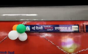 यूपी के प्रयागराज रेलवे स्टेशन पर उत्सव का माहौल दिखा। प्रयागराज से नई दिल्ली के बीच चलने वाली प्रयागराज एक्सप्रेस को भव्य रूप से सजाया गया।