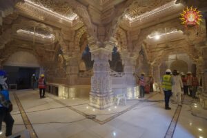 यूपी के अयोध्या धाम स्थित रामलला मंदिर में पांच जून को प्रथम तल पर रामदरबार व परकोटा की प्राण प्रतिष्ठा के लिए जल कलश यात्रा निकालकर पूरी श्रद्धा के साथ अनुष्ठानों का शुभारंभ हुआ। प्रदेश के विभिन्न जिलों से आए आचार्य अनुष्ठान में हिस्सा ले रहे है। मंदिर में मंत्रोच्चार के बीच राम रक्षा स्तोत्र का पाठ गूंज रहा है। इस बीच ट्रस्ट ने प्रथम तल की मनमोहक तस्वीर भी जारी की है।