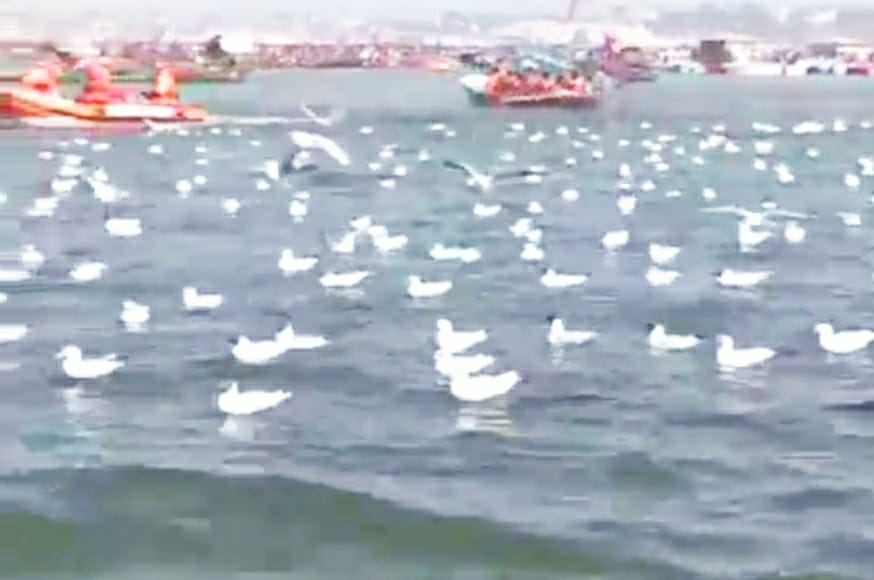 यूपी के तीर्थराज प्रयागराज में जनवरी से फरवरी के बीच 45 दिन तक चले महाकुंभ मेला परिसर बीते छह दिन से लगातार उजड़ रहा है। हालांकि श्रद्धालु अभी भी घाट पर दिख जाते हैं लेकिन प्रवासी पक्षियों ने अभी संगम स्नान नहीं छोड़ा है। ये अभी भी तैरते उड़ते दिख जाते हैं इनकी संख्या हजारों में है और इनकी रौनक देखते ही बनती है।