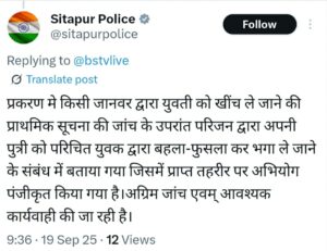 हालांकि वन विभाग के साथ तमाम पुलिसकर्मी सूचना मिलने के बाद घण्टों तक काम्बिंग में पसीना बहाते रहे। वहीं ग्रामीण भी लाठी डण्डा लिए खोजबीन में मदद करते रहे लेकिन बाघ की खबर झूठी व युवती के जिंदा होने की खबर से सभी ने राहत की सांस ली। फिलहाल पुलिस ने महिला की तहरीर पर प्रेमी सनी के खिलाफ थाने में मुकदमा दर्ज किया है। सीतापुर पुलिस ने भी अपने एक्स हैंडल के जरिये इस प्रकरण में जानकारी देकर कहा ‘किसी जानवर द्वारा युवती को खींच ले जाने की प्राथमिक सूचना की जांच के उपरांत परिजन द्वारा अपनी पुत्री को परिचित युवक द्वारा बहला-फुसला कर भगा ले जाने के संबंध में बताया गया जिसमें प्राप्त तहरीर पर अभियोग पंजीकृत किया गया है।