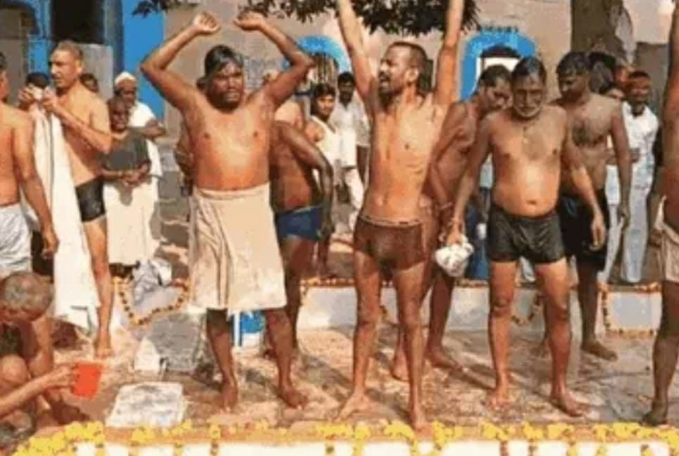 वाराणसी जेल में स्नान से पूर्व गूंजे मंत्र
