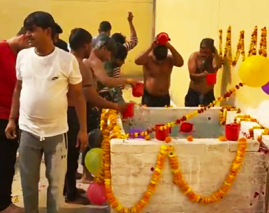 इटावा में स्नान से पूर्व बंदियों को बांटा गया प्रसाद