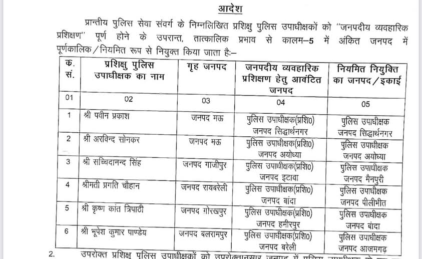 छह प्रशिक्षु पुलिस उपाधीक्षकों को नई तैनाती