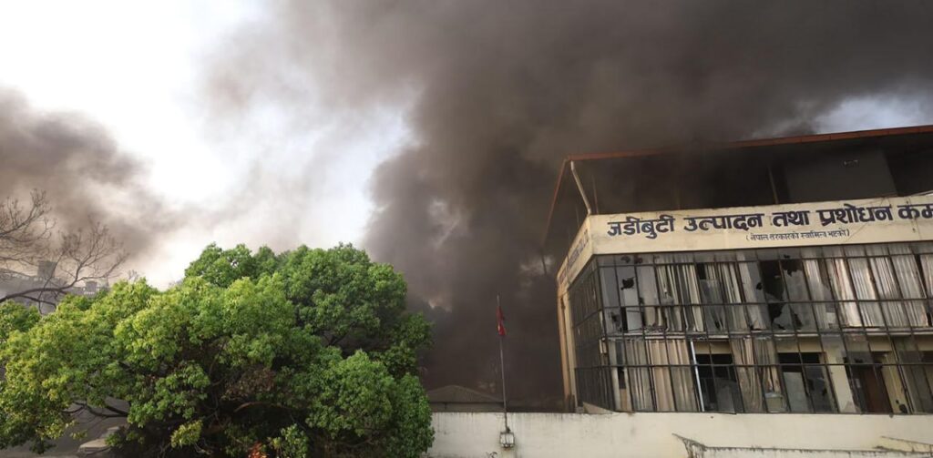 स्थिति उग्र होने के बाद प्रदर्शनकारियों ने कई सरकारी और निजी संपत्तियों को निशाना बनाया। जड़ी-बूटी कंपनी में तोड़फोड़ के बाद आगजनी की गई, कोटेश्वर में भाट-भटेनी मॉल के बाहर वाहनों में तोड़फोड़ की गई और मॉल से कीमती सामान लूटे गए। अंतरराष्ट्रीय त्रिभुवन हवाईअड्डे के पास सिना मंगल इलाके में आगजनी के कारण उड़ानों को रोकना पड़ा और कई अंतरराष्ट्रीय विमानों को हवा में होल्ड पर रखा गया।