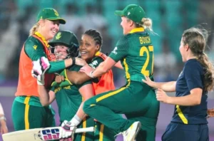 महिला क्रिकेट विश्व कप के दौरान विशाखापत्तनम में खेले गए वन डे मैच में साउथ अफ्रीका ने भारत पर 3 विकेट से जीत दर्ज की। इस मैच में साउथ अफ्रीका ने टॉस जीतकर पहले गेंदबाजी का फैसला लिया था। इस मैच में साउथ अफ्रीका की टारगेट चेज करने की जिद ने भारत की जीत की हैट्रिक के अरमान पर पानी फेर दिया। भारत ने इससे पहले पाकिस्तान और श्रीलंका को हराया था।